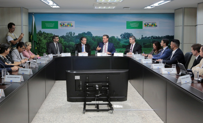 O ministro da Agricultura e Pecuária, Carlos Fávaro, e o ministro da Pesca e Aquicultura, André de Paula, se reuniram nesta terça-feira (30) com representantes do setor de pescados para reforçar o compromisso do Governo Federal com a pesca e aquicultura nacional.