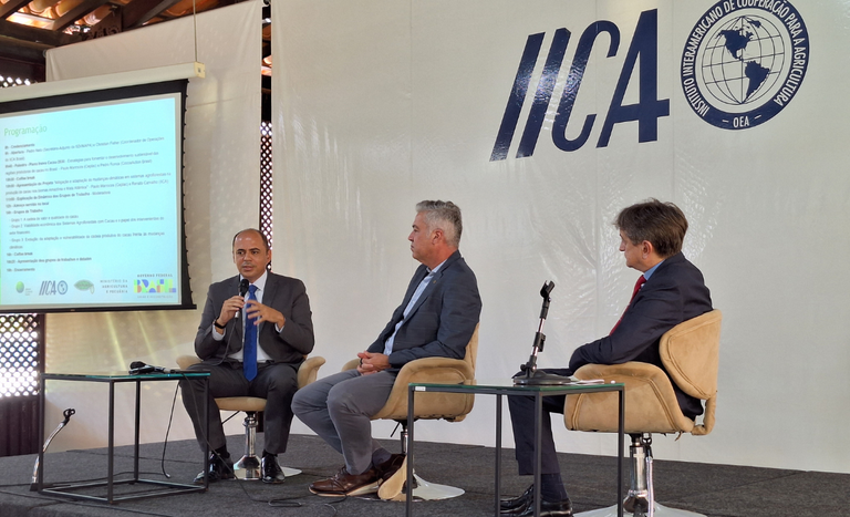 A abertura do evento foi conduzida pelo representante do IICA no Brasil, Christian Fischer, que destacou a importância de “avançar rumo à sustentabilidade, cada vez mais necessária, à agropecuária brasileira”. Participaram, também, o diretor executivo de Governança e Gestão da Embrapa, Alderi Araújo; e o secretário adjunto de Inovação, Desenvolvimento Sustentável, Irrigação e Cooperativismo do Mapa, Pedro Neto. A iniciativa do GCF foi apresentada aos participantes pelo gestor de projetos do IICA, Giovanni Coelho.