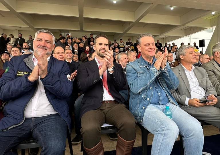 O ministro Carlos Fávaro iniciou seu discurso ressaltando a força dos produtores gaúchos após as perdas por intempéries climáticas. “O símbolo da força da agropecuária está aqui nesta feira, tudo recomeçando a passos largos, os números já mostram a força da economia. Nós tínhamos que estar aqui neste momento”, disse.