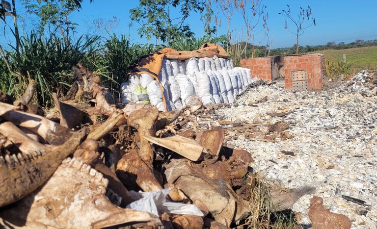 Os resíduos de abate eram processados e mantidos em local sem quaisquer condições higiênico-sanitárias, utilizando ossos provenientes de estabelecimentos sem comprovação de origem ou de fornecedores autorizados, além de serem depositados diretamente no chão, a céu aberto, não cumprindo com nenhum dos requisitos de Boas Práticas de Fabricação previstos na legislação do Mapa.