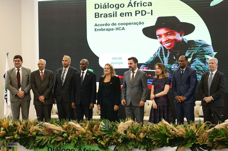 Nesta quarta-feira (19), aconteceu, em Brasília, o evento "Diálogo África-Brasil em PD&I na Agropecuária - Levando a Cooperação Internacional ao Próximo Nível", promovido pela Empresa Brasileira de Pesquisa Agropecuária (Embrapa), pelo Instituto Interamericano de Cooperação para a Agricultura (IICA) e pela Agência Brasileira de Cooperação (ABC). Com o apoio do Ministério da Agricultura e Pecuária (Mapa), o encontro reuniu embaixadores, especialistas e autoridades para debater estratégias de fortalecimento da cooperação e relações agropecuárias entre o Brasil e os países africanos.