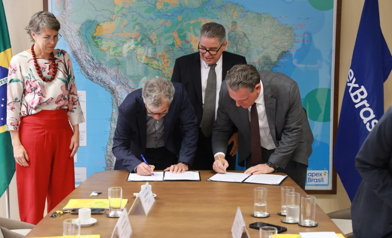 O documento foi assinado pelo presidente da ApexBrasil, Jorge Viana, e pelo presidente da Famato, Vilmondes Sebastião Tomain, com o ministro Fávaro como testemunha.