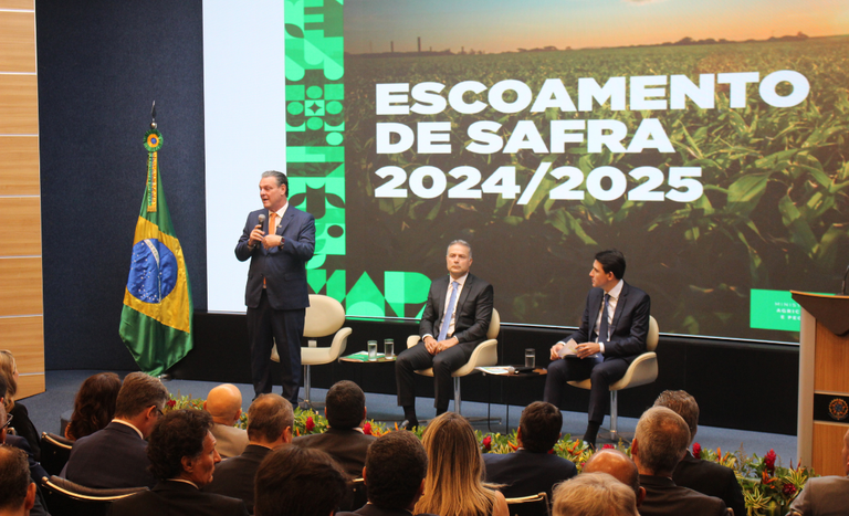 "A safra de grãos, até então, era referenciada apenas pela produção brasileira de grãos. Mas, quem disse que somos limitados a isso? No ano passado, alcançamos 298 milhões de toneladas de grãos. No entanto, a safra brasileira, que circula pelas rodovias, ferrovias, portos e aeroportos, são mais de 1200 milhões de toneladas. Esse é o tamanho da nossa demanda agropecuária", explicou Fávaro.