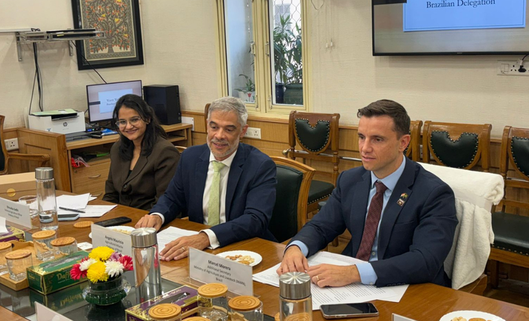 Ainda nesta sexta-feira (17), a comitiva do Mapa também participou de reunião com o secretário-adjunto de Agricultura e Bem-Estar dos Agricultores da Índia, Ajeet Kumar Sahu. O encontro teve como foco o debate sobre o fortalecimento dos fluxos bilaterais de comércio de produtos agropecuários entre os dois países.