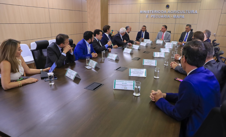 Após participar do 18º Congresso Internacional ALASA, o ministro da Agricultura e Pecuária, Carlos Fávaro, recebeu os representantes da Associação Latino-Americana para o Desenvolvimento do Seguro Agrícola (ALASA) nesta terça-feira (8), na sede do Ministério da Agricultura e Pecuária (Mapa).