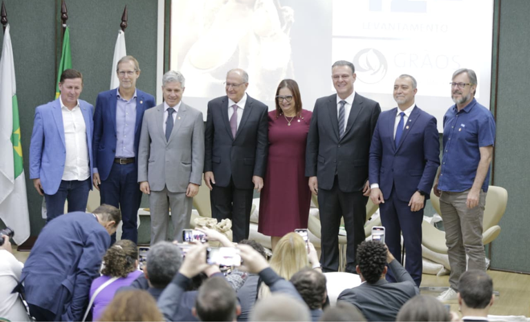 O ministro da Agricultura e Pecuária, Carlos Fávaro e o vice-presidente e ministro do Desenvolvimento, Indústria, Comércio e Serviços, Geraldo Alckmin, participaram do anúncio do 12º Levantamento da Safra de Grãos 2024/2025 realizado pela Companhia Nacional de Abastecimento (Conab).