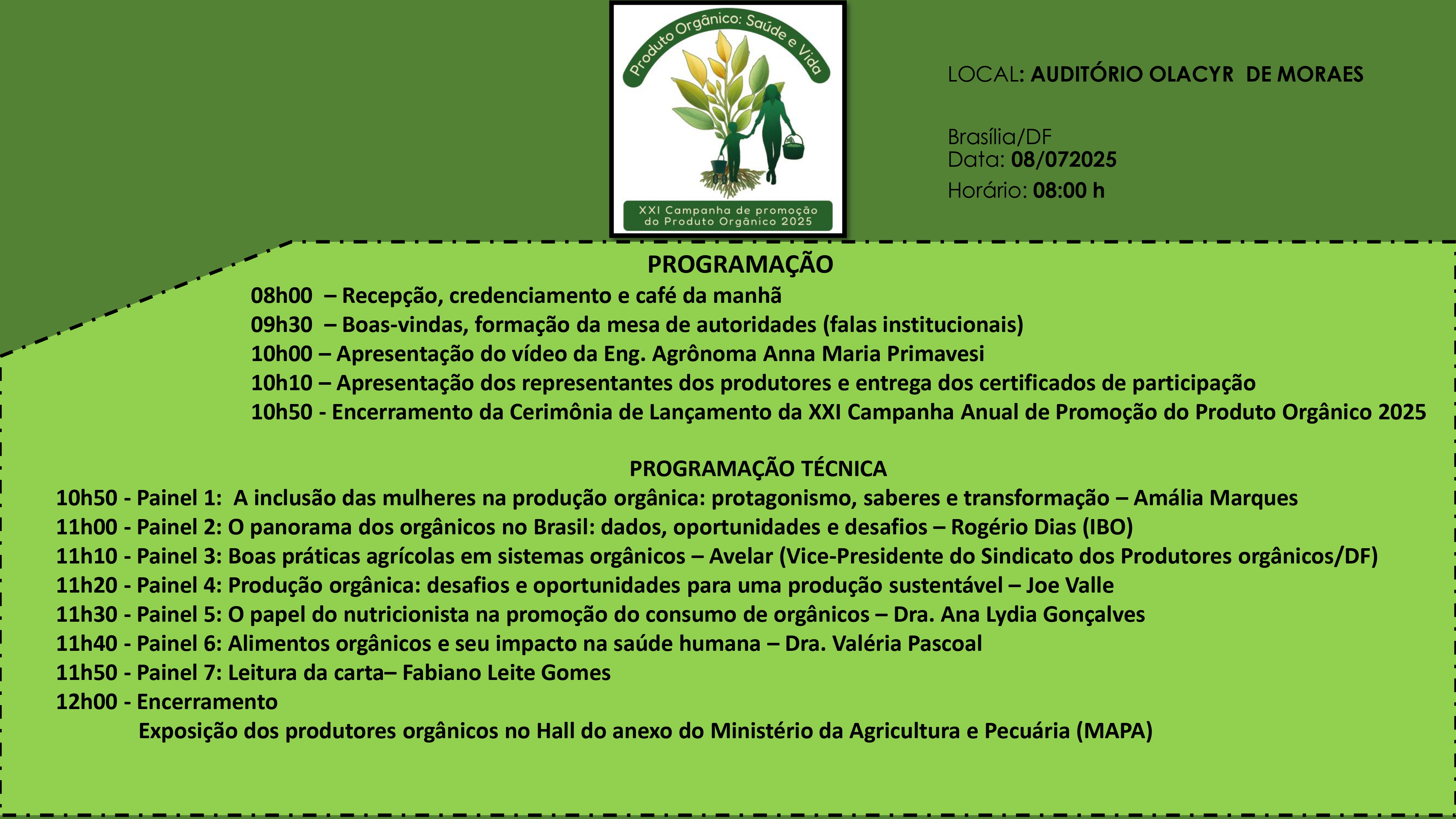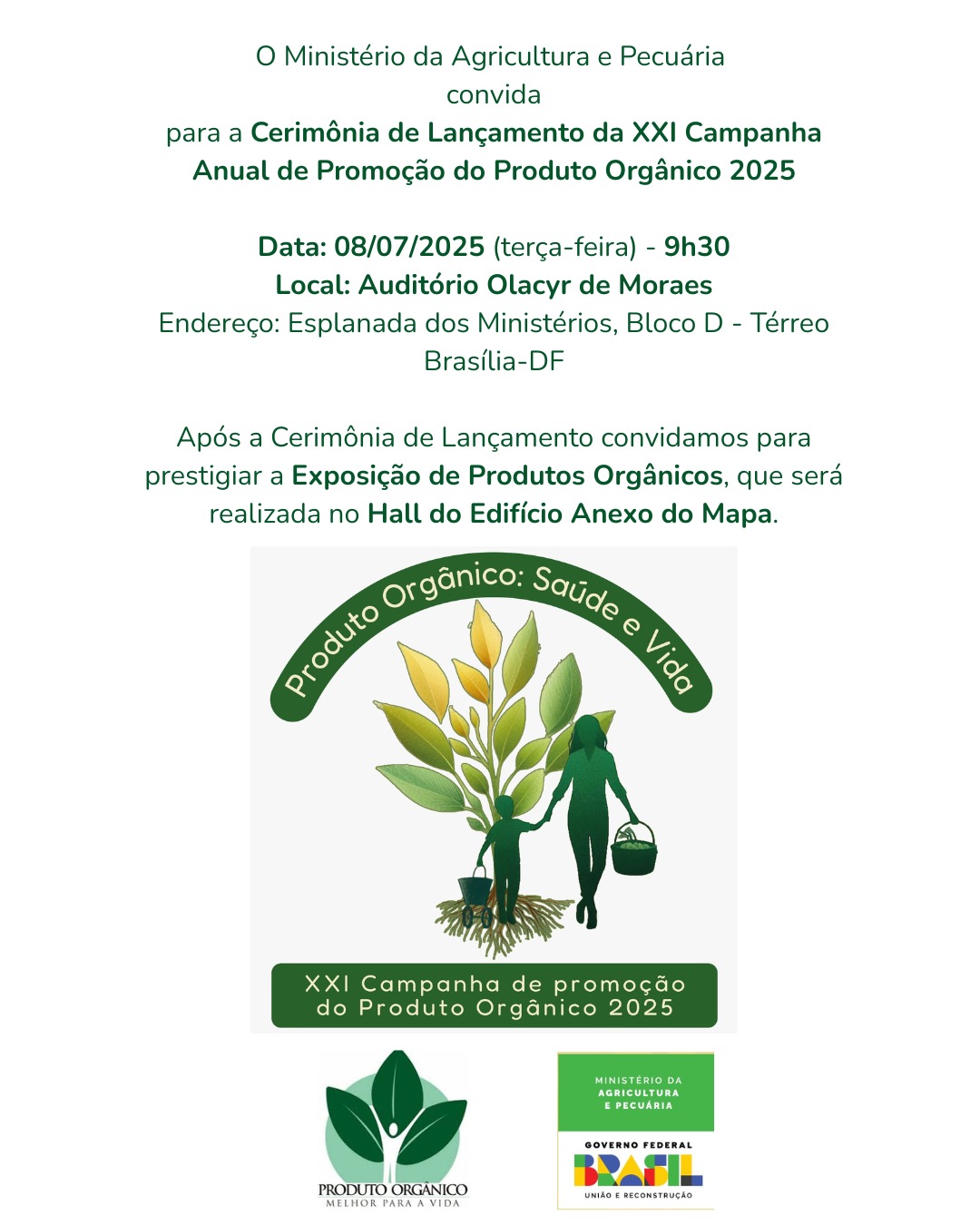 Assista à Cerimônia de Lançamento da XXI Campanha Anual de Promoção do Produto Orgânico 2025 – Ao Vivo no YouTube