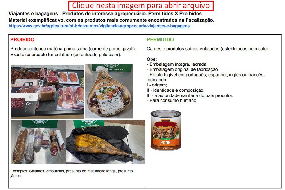 A inobservância das exigências sanitárias do controle agropecuário brasileiro pode resultar na destruição dos produtos trazidos pelos viajantes, segundo procedimentos especificados no Manual de Procedimentos Operacionais do Vigiagro, publicado pela Instrução Normativa MAPA nº 39, de 27/11/2017