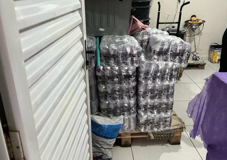 Durante as buscas realizadas nas propriedades, foram apreendidos insumos, equipamentos utilizados na produção e embalagens com selos falsos do Mapa.