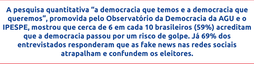 2 https://www.gov.br/agu/pt-br/comunicacao/noticias/70-da-populacao-preferem-a-democracia-a-qualquer-outra-forma-de-governo/PESQUISAOBSERVATRIODEMOCRACIAIPESPEFEBRABAN.pdf