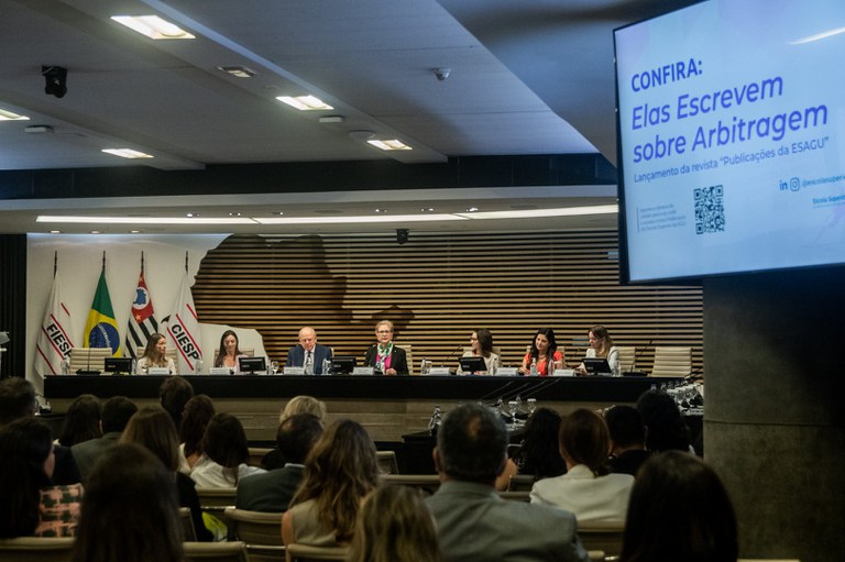 A revista “Elas Escrevem sobre Arbitragem” foi lançada logo após a mesa de abertura, no primeiro painel do Congresso. Com artigos científicos e comentários de grandes nomes da área de mediação e arbitragem, o material destaca a importância das mulheres na área e é a primeira publicação da ESAGU escrita exclusivamente por mulheres. A iniciativa busca não só valorizar a atuação profissional feminina como arbitralistas, mas também destacar a contribuição científica de mulheres e oportunizar a igualdade em espaços de debate e de conhecimento. Ao final do painel, exemplares impressos foram entregues aos participantes.