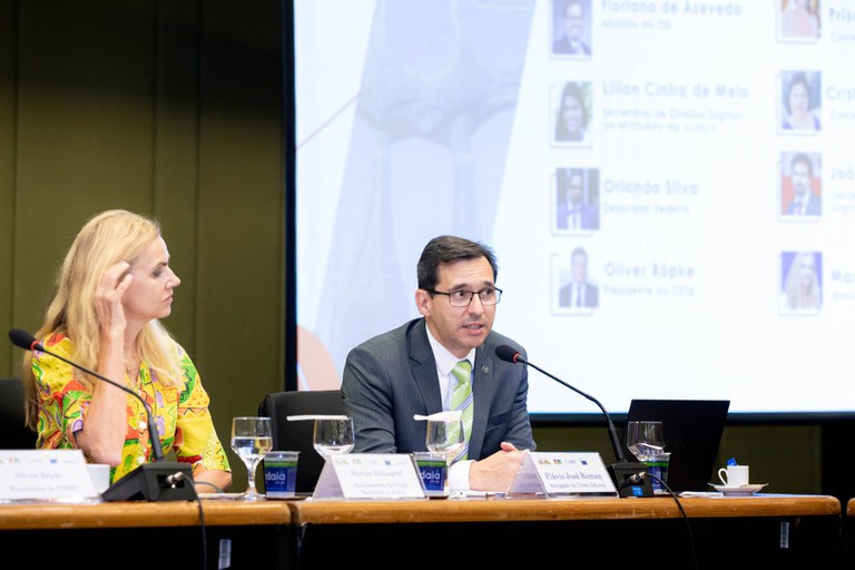 Durante o evento, a embaixadora Marian Schuegraf, chefe da delegação da União Europeia no Brasil, afirmou que a experiência europeia demonstra que é possível implementar uma regulamentação para as plataformas digitais.