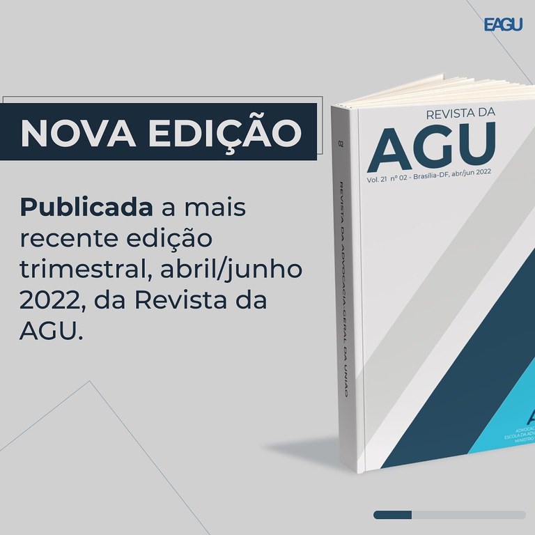 A Revista da AGU é publicada pela Escola da Advocacia-Geral da União há 20 anos e tem como objetivo a promoção e divulgação de materiais científicos inéditos na área do Direito Público e da Advocacia Pública.