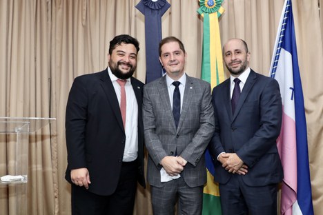 O novo procurador-chefe da União no Espírito Santo, Diego Carvalho Marins; o advogado-geral da União, Bruno Bianco Leal; e o procurador-geral da União, Vinicius Torquetti