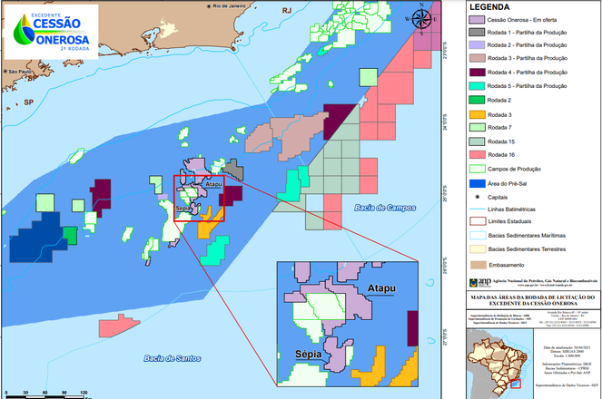Cinco empresas arremataram as áreas durante a Segunda Rodada de Licitações dos Volumes Excedentes da Cessão Onerosa: Petrobras, TotalEnergies EP, Petronas, QP Brasil e Shell Brasil. Elas irão compor dois consórcios referentes às duas áreas (Sépia e Atapu) para a exploração e produção de petróleo e gás natural. As áreas de desenvolvimento de Sépia e Atapu foram ofertadas no regime de partilha de produção e o contrato é de por 35 anos.