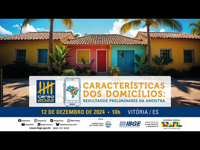 Assista à divulgação dos resultados do Censo Demográfico 2022: Características dos Domicílios