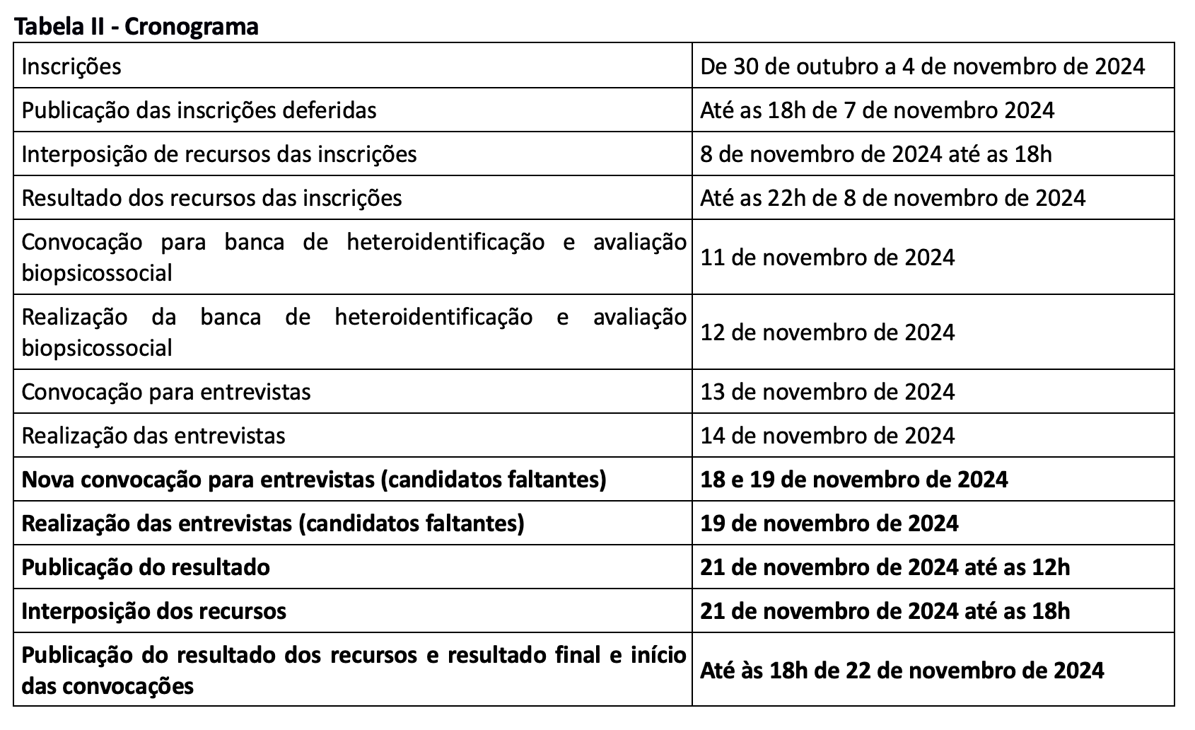 Retificação da Tabela II - Cronograma