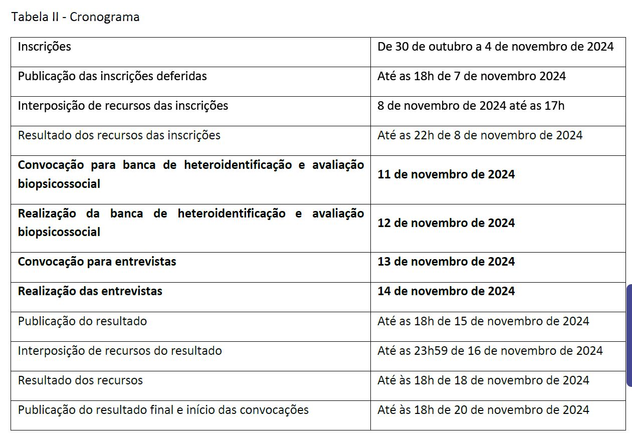 Ficam corrigidas as informações do cronograma do processo seletivo constantes da Tabela II da Chamada Pública ANA/CNPq/ Nº 01/2024, passando a viger as seguintes: