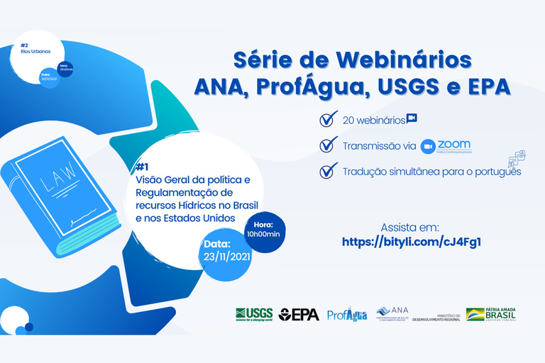 Em 23 de novembro, terça-feira, a partir das 10h, começará a série de webinários gratuitos com especialistas do Serviço Geológico dos Estados Unidos (USGS na sigla em inglês) e da Agência de Proteção Ambiental dos Estados Unidos (EPA na sigla em inglês). O primeiro encontro será sobre a Visão Geral da Política e Regulamentação de Recursos Hídricos no Brasil e nos Estados Unidos e será transmitido via plataforma Zoom em: https://bityli.com/cJ4Fg1. Não é necessário fazer inscrição e basta entrar no link no dia e horário do evento, sendo que haverá tradução simultânea de inglês para português.