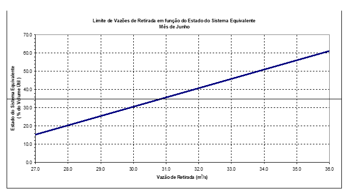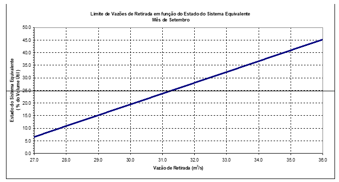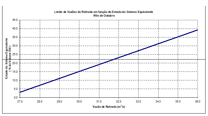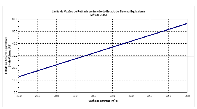 Limites de vazão de retirada em função do estado do sistema equivalente
