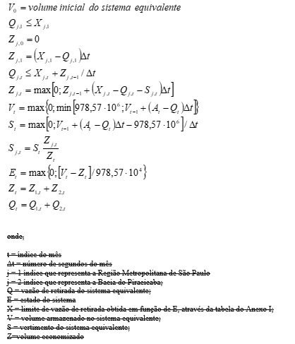 § 2º A vazão de retirada do Sistema Equivalente, denominada Q, é a soma da vazão de transferência para a bacia do Alto Tietê, através do Túnel 5, denominada Q1, e da soma das vazões defluentes dos reservatórios de Jaguari-Jacareí, Cachoeira e Atibainha para a Bacia do Rio Piracicaba, excluindo-se os vertimentos, denominada Q2.