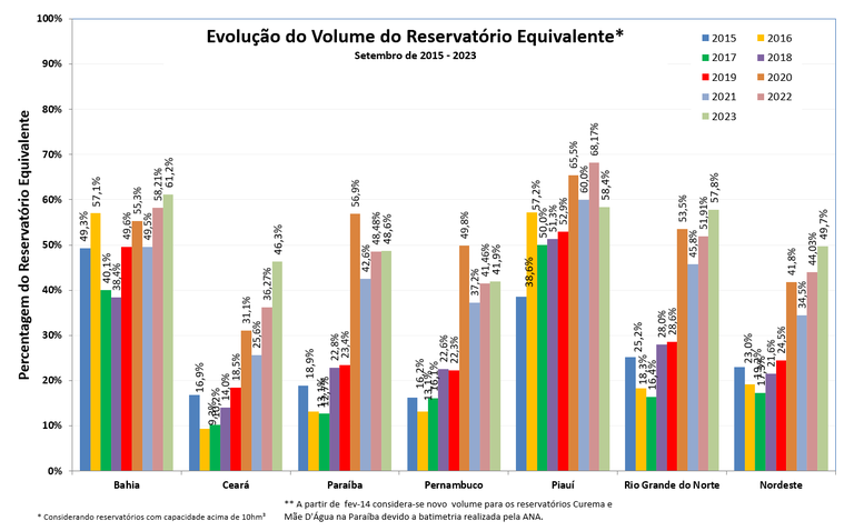 Áreas com seca diminuíram em 14 estados e aumentaram em quatro estados. Em cinco unidades da Federação, o fenômeno se manteve estável. Seca deixou se ser registrada na Paraíba e no Rio Grande do Norte, enquanto Rio Grande do Sul e Santa Catarina se mantiveram livres do fenômeno.