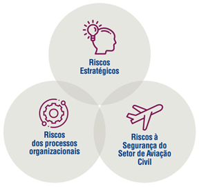 - Riscos à segurança do setor de aviação civil: inerentes e sistêmicos do setor de aviação civil e da atuação dos entes regulados que afetem a segurança do transporte, sendo tratados e gerenciados no âmbito das competências regulatórias e fiscalizatórias da Agência.