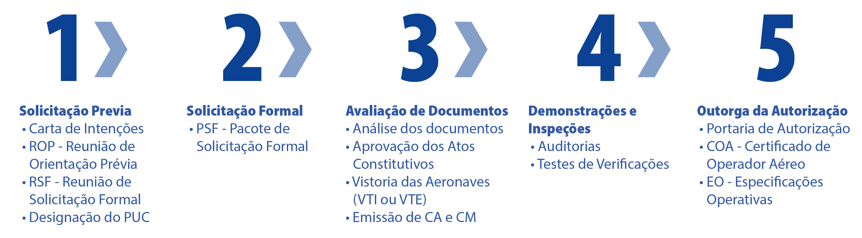 Descrição resumida das 5 etapas do processo
