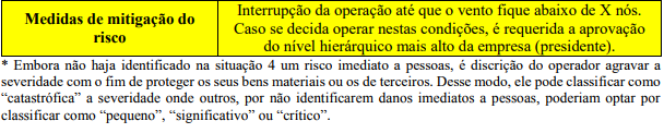 11.2.7.1 Por não transportar pessoas a bordo, uma RPA pode ser operada em áreas ou condições perigosas, como próximo a acidentes químicos ou nucleares, vulcões exalando ou em erupção e em condições meteorológicas severas.