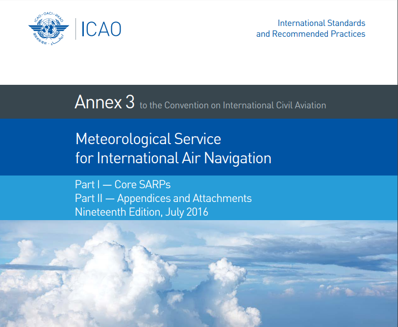 Os conceitos gerais e princípios basilares da atividade meteorológica para a navegação aérea estão documentados no Anexo 3 da Convenção de Chicago: