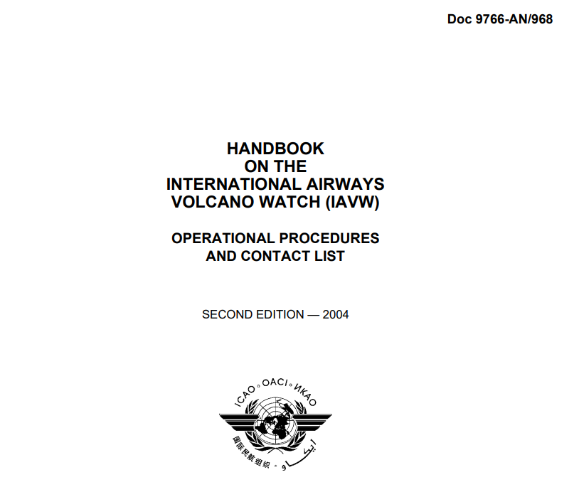 - Manual sobre a Vigilância de Vulcões nas Aerovias Internacionais (IAVW) – Procedimentos Operacionais e Listas de Contatos. Doc 9766-AN/968, 2ª edição.