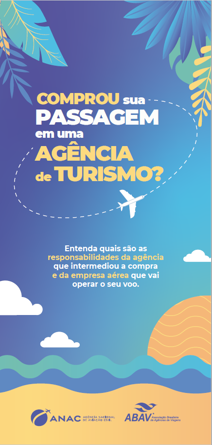 Folder traz informações sobre como acessar os direitos e deveres do passageiro e o passo a passo para a resolução de problemas eventuais com a passagem ou com o voo.