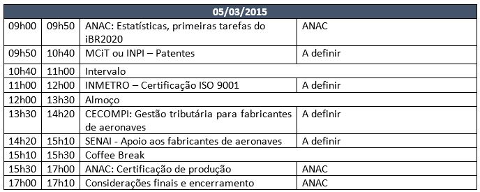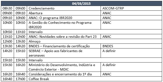 A Agência Nacional de Aviação Civil (ANAC) vai promover, nos dias 4 e 5 de março de 2015, das 9h às 17h, o