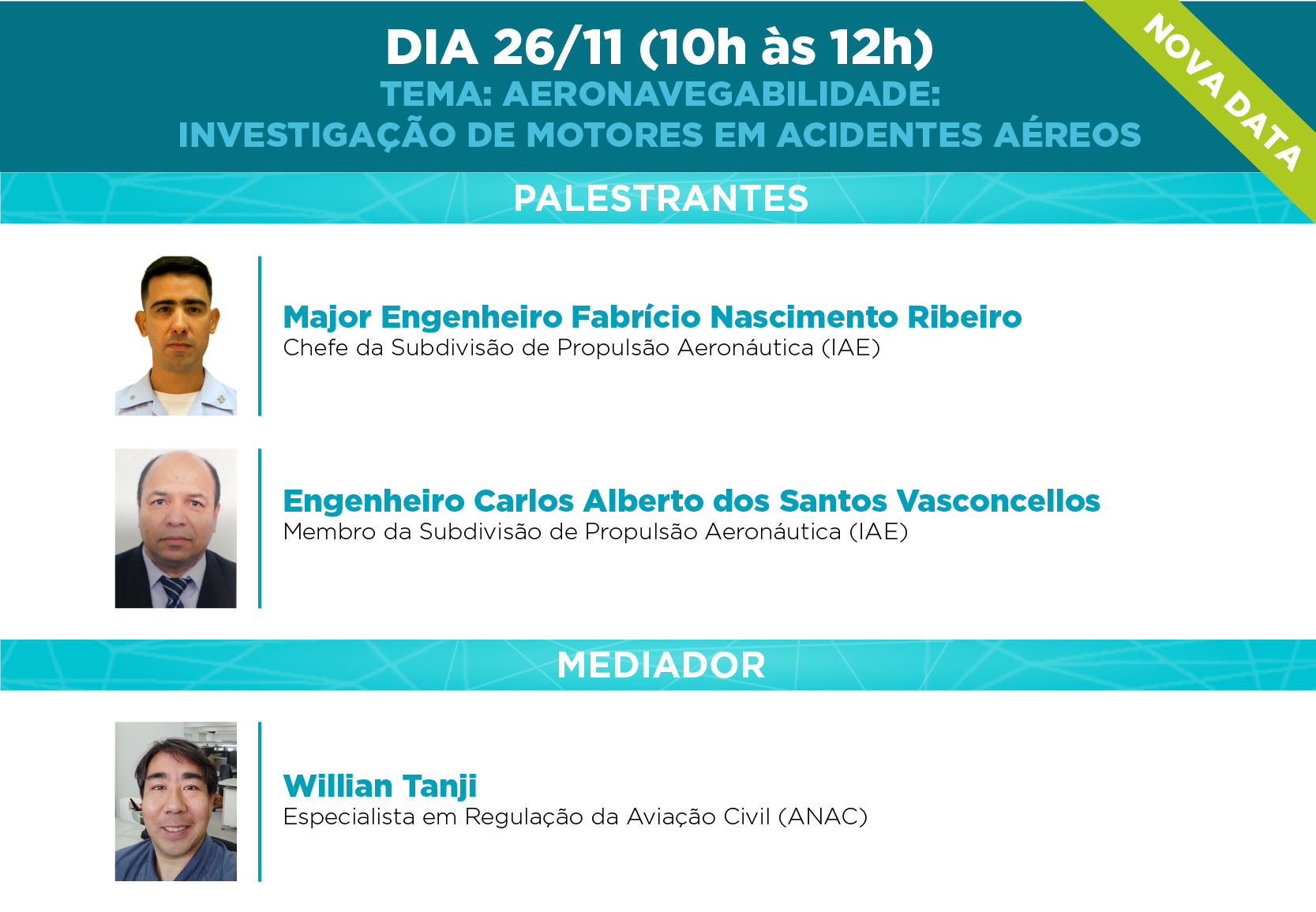 * A data do painel "Aeronavegabilidade: investigação de motores em acidentes aéreos" mudou de 11/11 para 26/11.