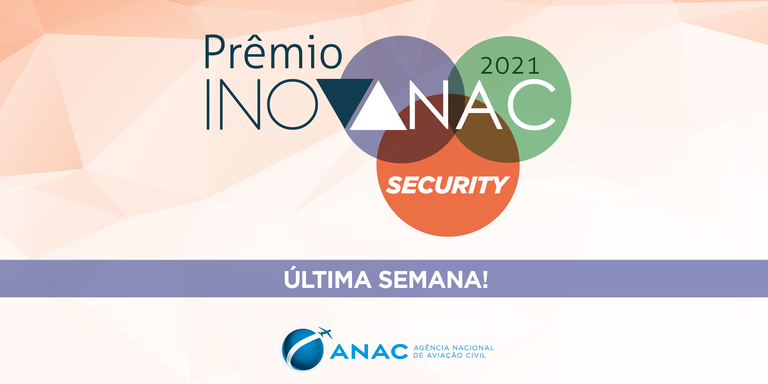 Esta é a última semana para os interessados se inscreverem na edição 2021 do Prêmio InovANAC Security. Destinado aos operadores aéreos e aeroportuários, centros de instrução AVSEC e profissionais que atuam na promoção da segurança da aviação civil contra atos de interferência ilícita nos aeródromos, o concurso premiará o melhor trabalho nas categorias ideias e práticas inovadoras, cujo objetivo seja o desenvolvimento da aviação civil brasileira.
