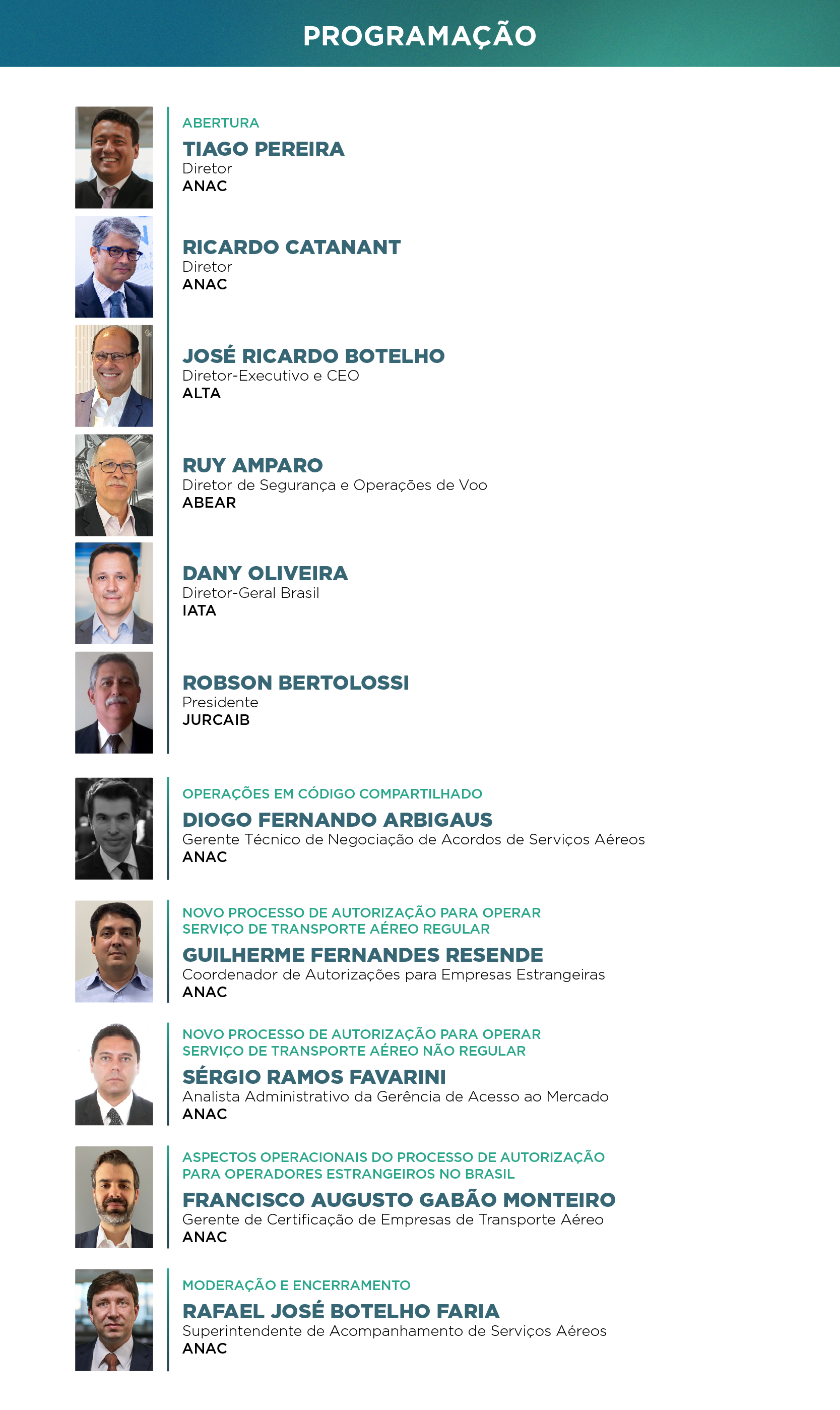 Tais mudanças serão tratadas no evento que contará com a abertura do Diretor da ANAC, Tiago Pereira, participação dos dirigentes da Associação Brasileira das Empresas Aéreas (ABEAR), da Associação Latino-Americana e do Caribe de Transporte Aéreo (ALTA), da Associação Internacional de Transportes Aéreos (IATA) e da Junta de Representantes das Companhias Aéreas Internacionais do Brasil (JURCAIB), além de ter como facilitador o Superintendente de Serviços Aéreos da ANAC, Rafael José Botelho Faria.