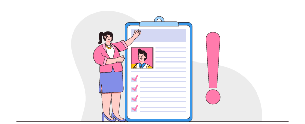 Ilustração de uma mulher com uma prancheta com dados em checklist.