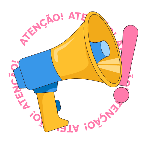 Ilustração de um megafone e em volta o texto "atenção".