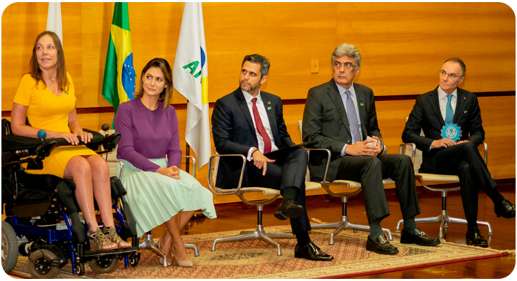 “Espero que o Prêmio Anatel de Acessibilidade em Telecomunicações sirva de incentivo para outras empresas”, afirmou a primeira-dama. “O caminho da acessibilidade é o único caminho possível, a legislação brasileira tem avançado muito, mas a realidade nem sempre reflete o que diz a lei”, disse Michelle Bolsonaro.