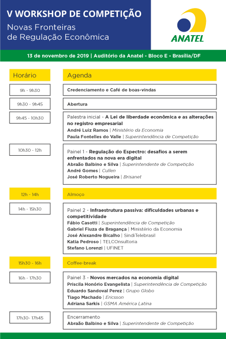 Anatel promove 5º Workshop de Competição nesta quarta-feira (13/11)
