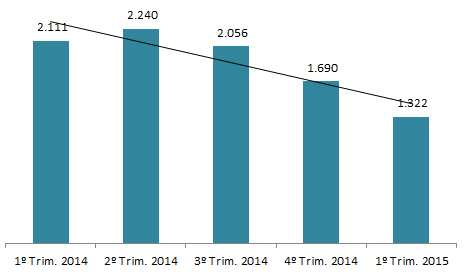 A evolução do número de municípios com ao menos um indicador, de uma empresa, que não atende aos patamares estabelecidos é positiva, com redução desde o início das publicações de ranking por município e de cautelares exaradas para municípios específicos em novembro de 2013, como aponta o gráfico abaixo.