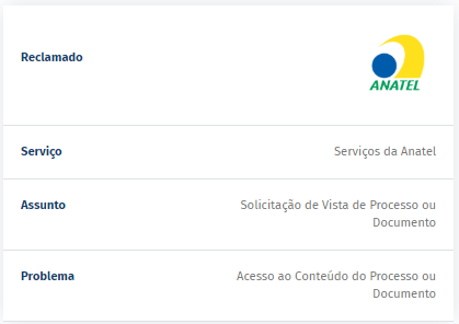 - Documentos anexos: mostra os anexos da solicitação inseridos pelo usuário ou pela Anatel.