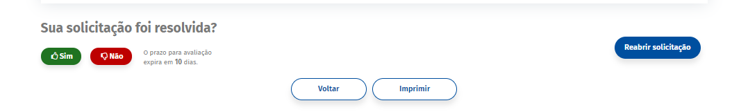 Atenção: diferente do sistema anterior, o Fale Conosco, caso a solicitação não seja respondida em 10 dias corridos, ela é automaticamente concluída. Após a conclusão da solicitação, o usuário tem dez dias para reabri-la ou avaliá-la.