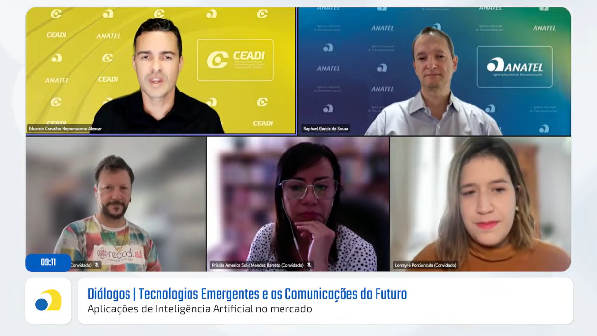 No dia 17 de outubro, o Centro de Altos Estudos em Comunicações Digitais e Inovações Tecnológicas (Ceadi) promoveu a palestra “Tecnologias Emergentes e as Comunicações do Futuro: Aplicações de Inteligência Artificial no Mercado”. O evento reuniu especialistas em uma mesa-redonda sobre o uso prático da inteligência artificial, com a participação de Lorrayne Porciuncula (Datasphere Initiative), professora Priscila Solis (UnB) e professor Anderson Rocha (Unicamp), referência em IA e forense digital.