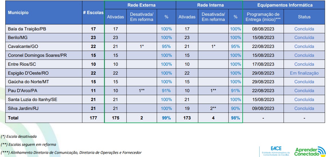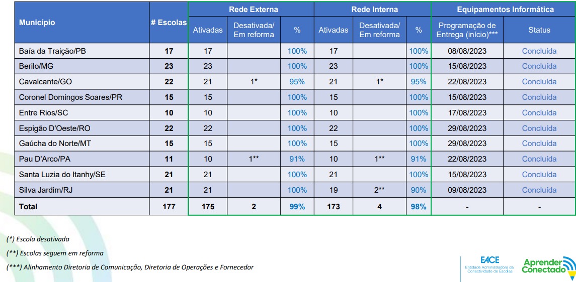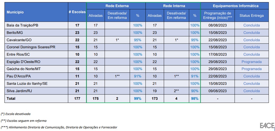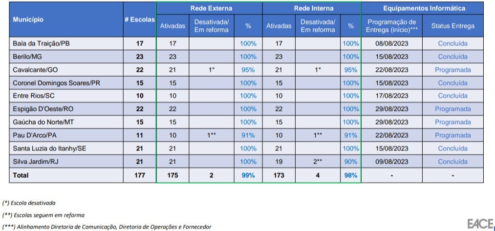 Informações sobre o Grupo de Acompanhamento do Custeio a Projetos de Conectividade de Escolas.