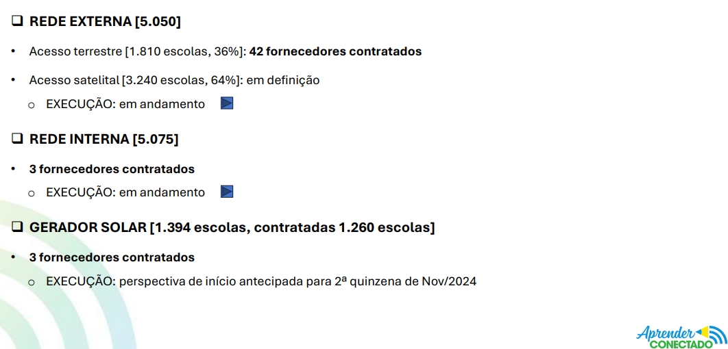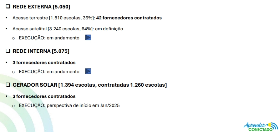 Informações sobre o Grupo de Acompanhamento do Custeio a Projetos de Conectividade de Escolas.