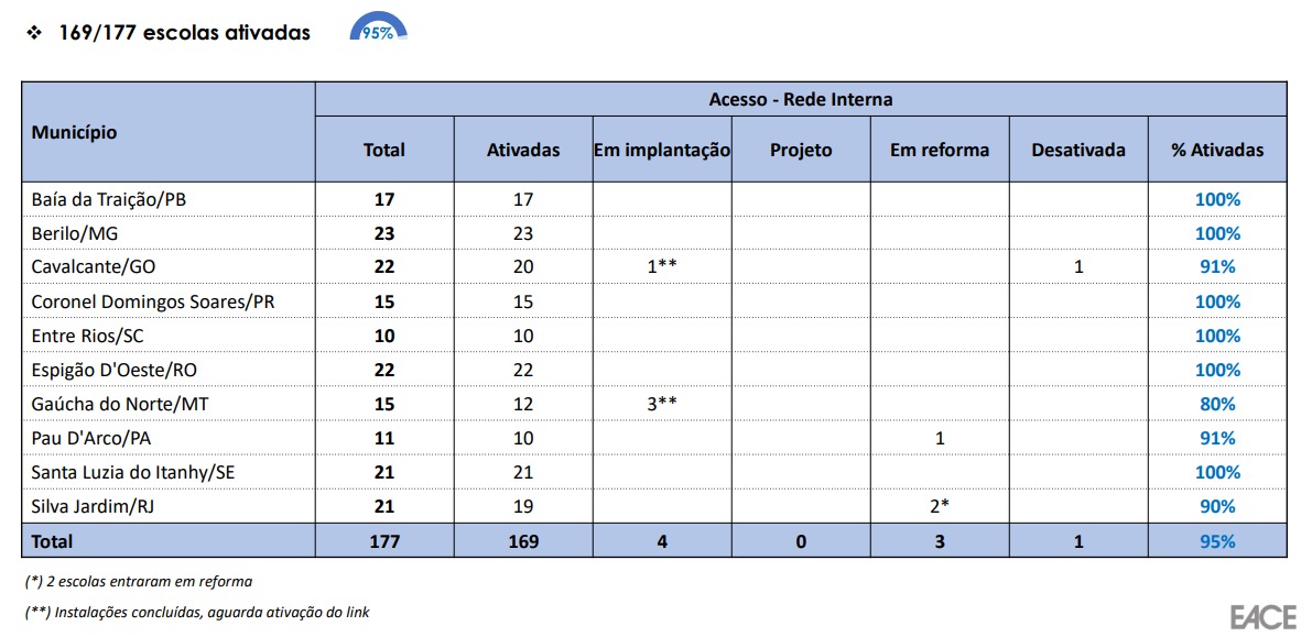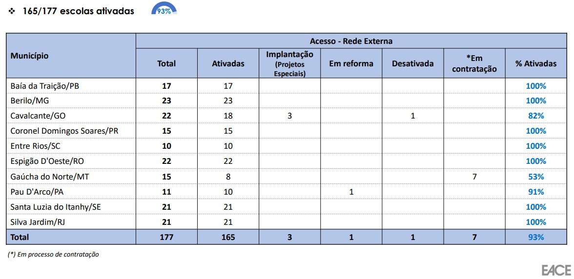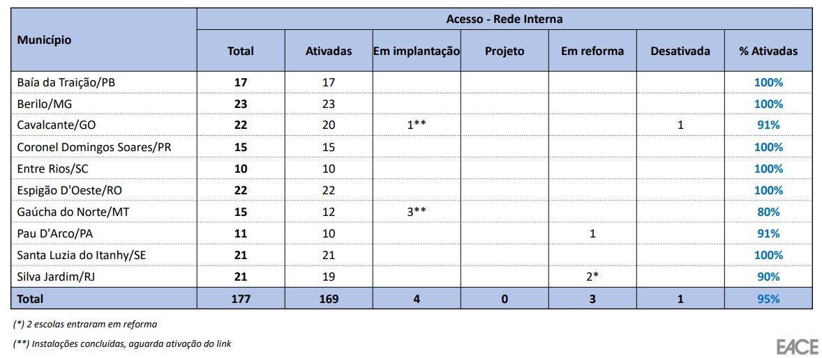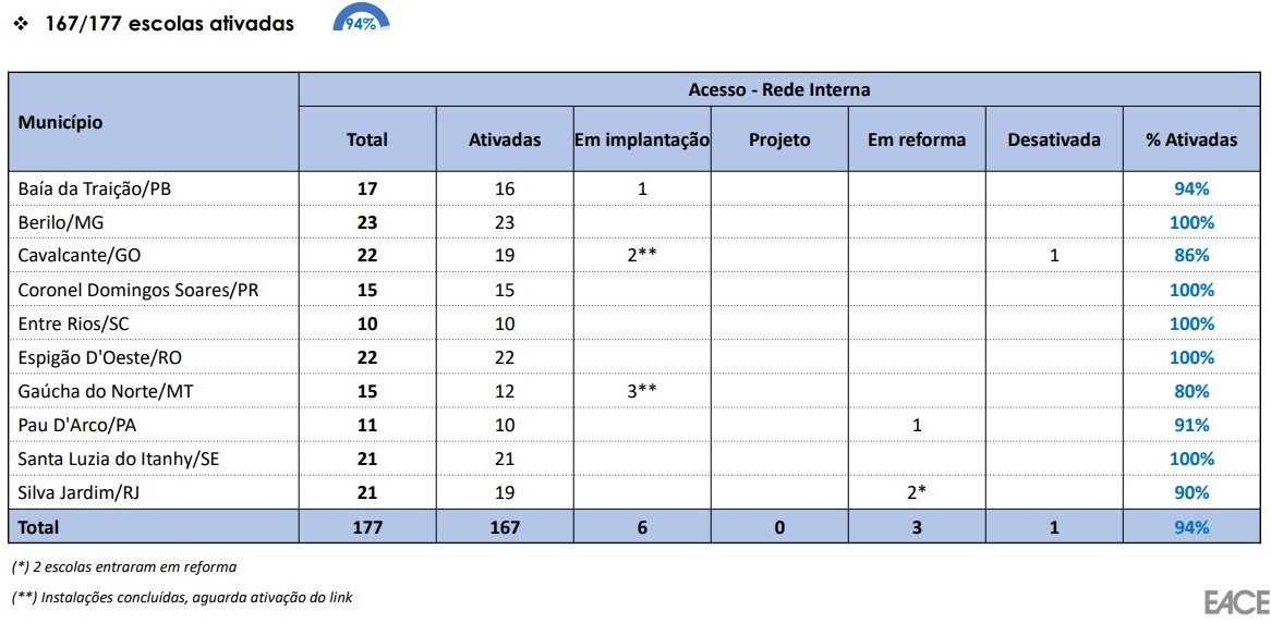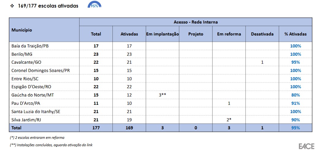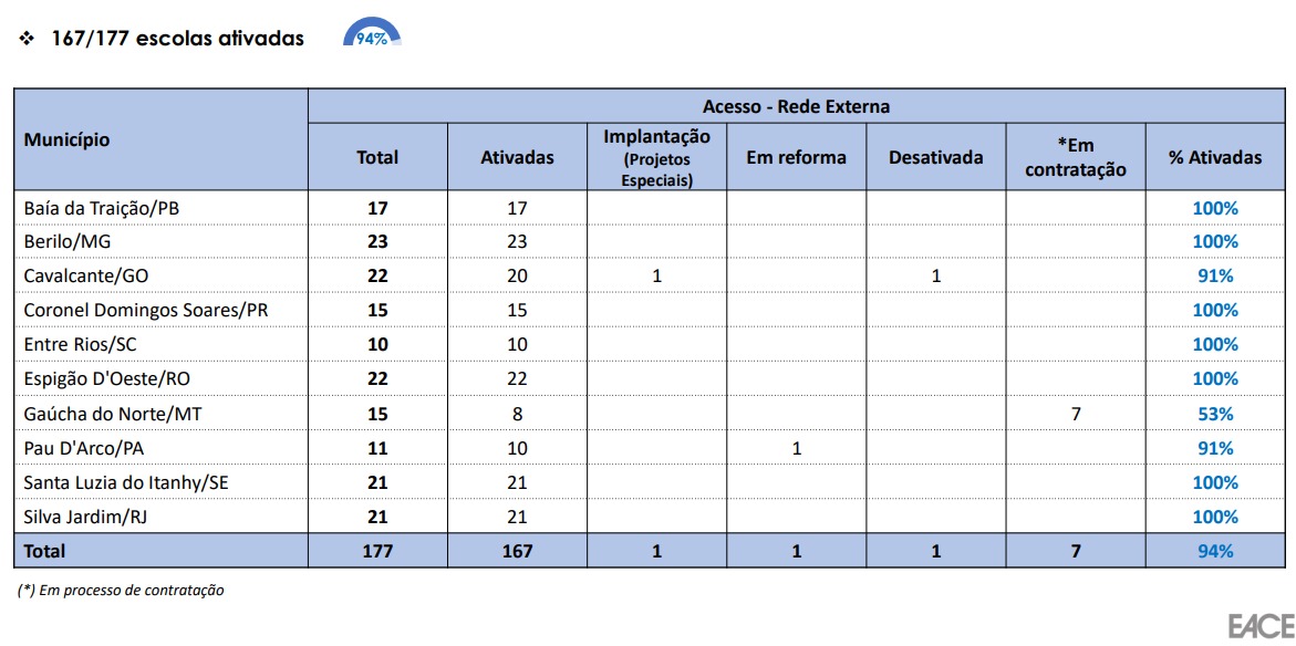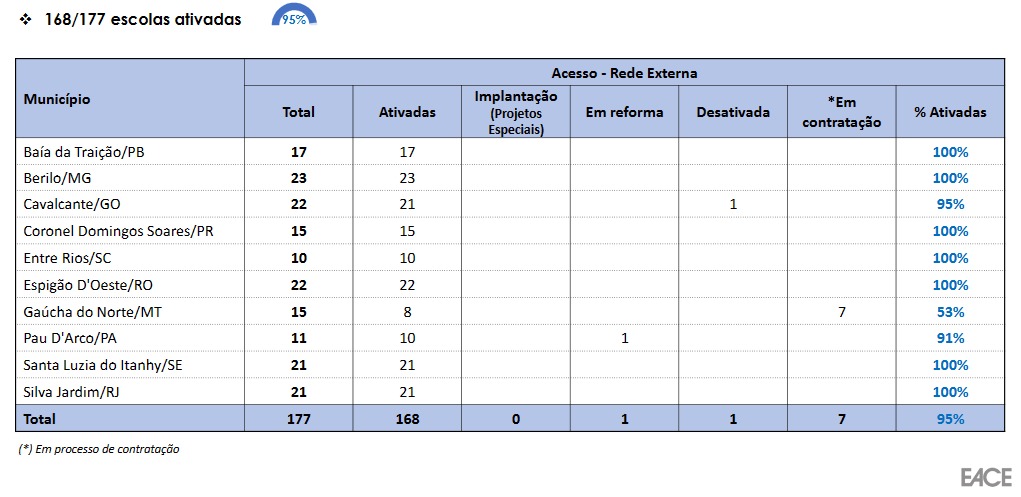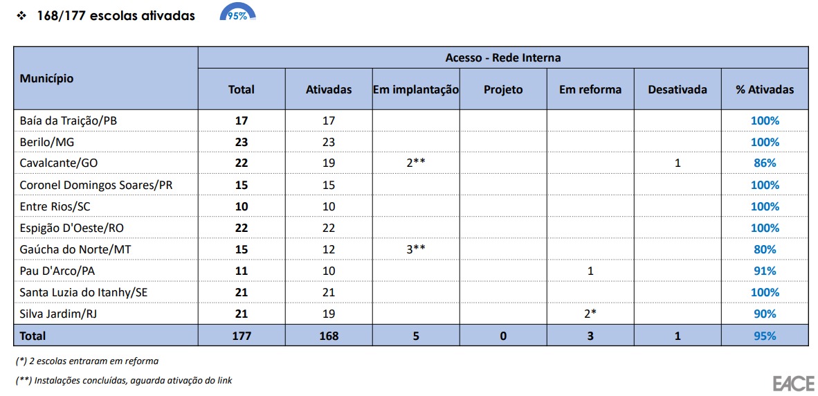 Informações sobre o Grupo de Acompanhamento do Custeio a Projetos de Conectividade de Escolas.