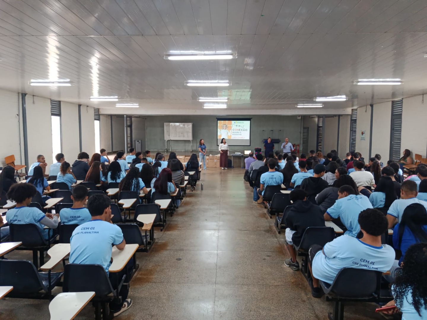 Em encontro realizado nessa quinta-feira, 12/3, 160 estudantes do Centro de Ensino Médio (CEM-01) puderam ouvir sobre uso excessivo de telas, chantagens online e cyberbullying, em uma abordagem adaptada para esse público e que leva para dentro das escolas um diálogo direto, acessível e necessário sobre o mundo digital.