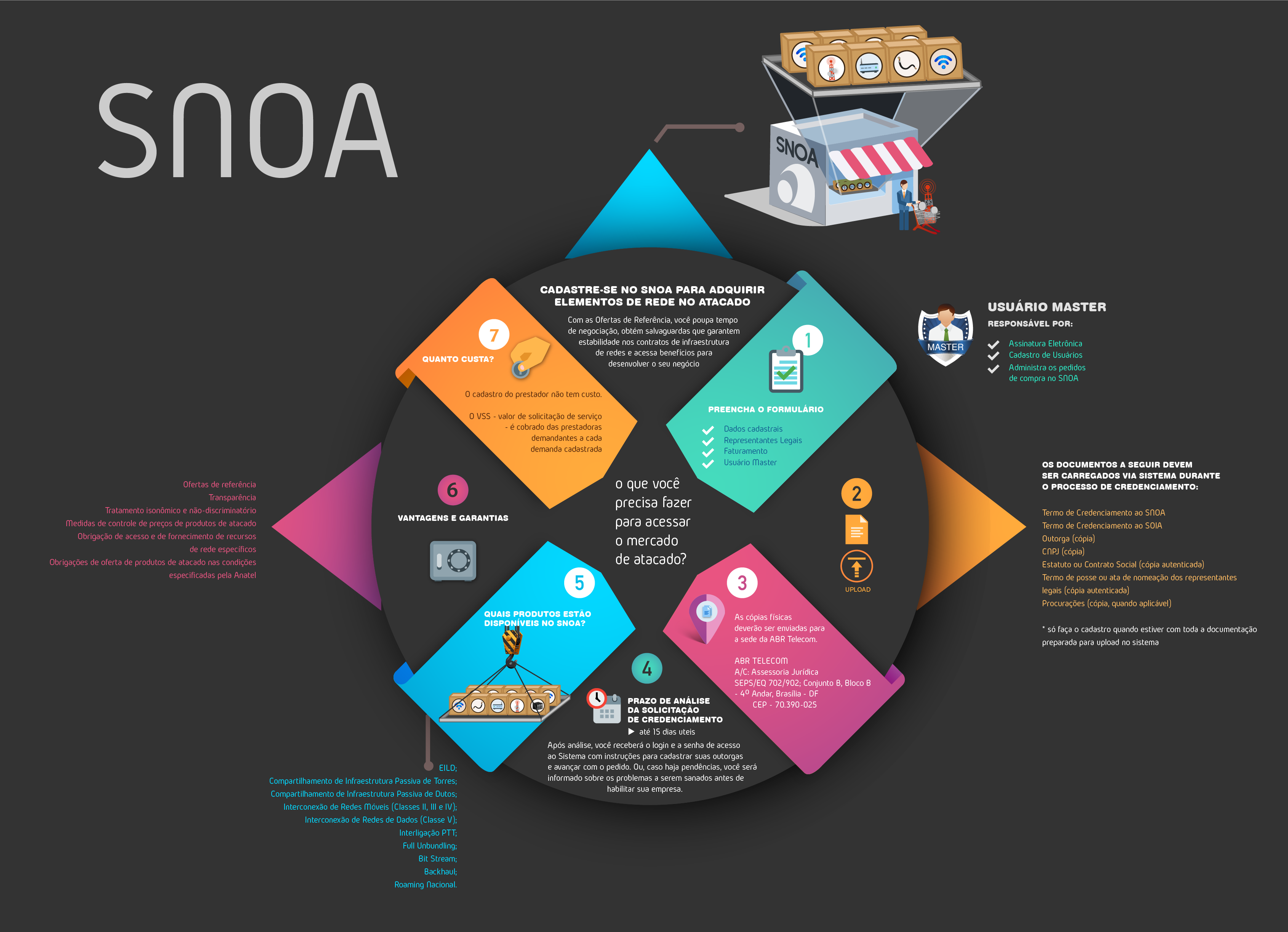 Para acessar o Sistema de Negociação de Ofertas de Atacado, a prestadora de pequeno porte precisa ser credenciada pela ABR Telecom, que atua como Entidade Supervisora de Ofertas de Atacado (ESOA). Ela é a responsável pela organização e acompanhamento das ofertas de produtos.