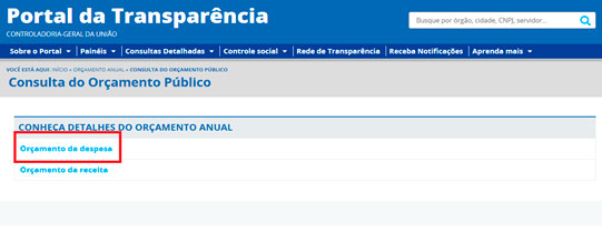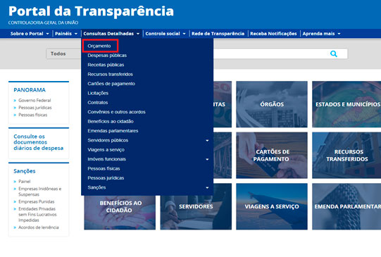 Passo a passo para consulta da execução orçamentária no Portal da Transparência